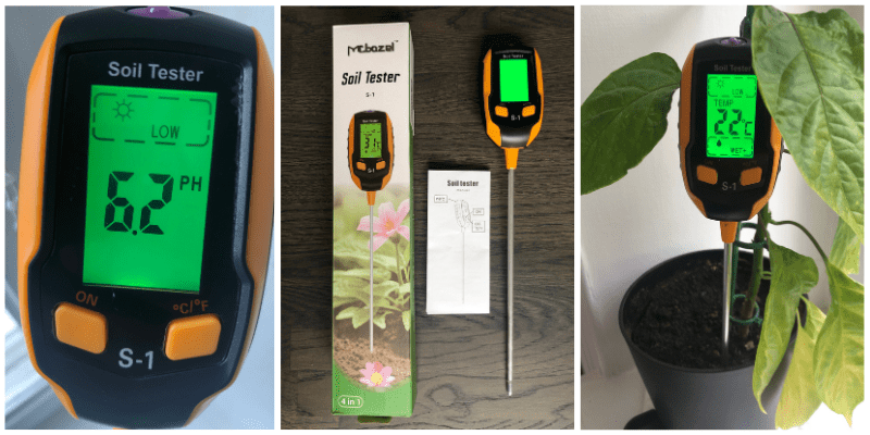 Designad för att mäta jordens pH-värde, fuktighet, temperatur och ljusintensitet.